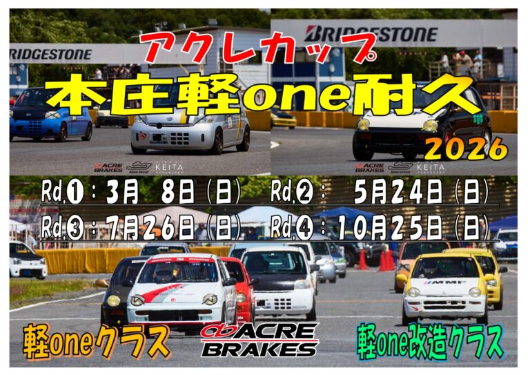 Projectμプレゼンツ 本庄軽one耐久2026 N-Nクラスシリーズ 投稿日 2026年1月21日 著者 honjostaff カテゴリー グリップイベント シリーズ全4戦開催いたします。N-Nクラスシリーズは給油ありの5時間耐久レースです。詳細は後日掲載いたしますので今しばらくお待ちください。2026シリーズ開催日程第1戦 4月12日(日) ・ 第2戦 6月7日(日) 第3戦 10月11日(日) ・ 第4戦 12月6日(日) - シェア - ツイート - ブックマーク - LINE - Pocket - Pinterest - コピー この記事を書いた人 honjostaff 記事一覧